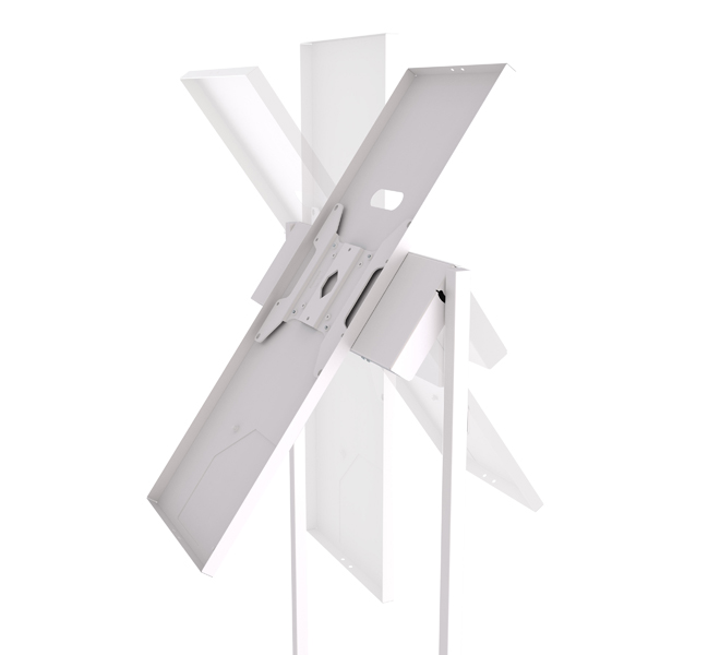 Abschließbares Technikfach, integrierte Kabelführung, optionale Bodenverschraubung und Portrait-/Landscape-Montage