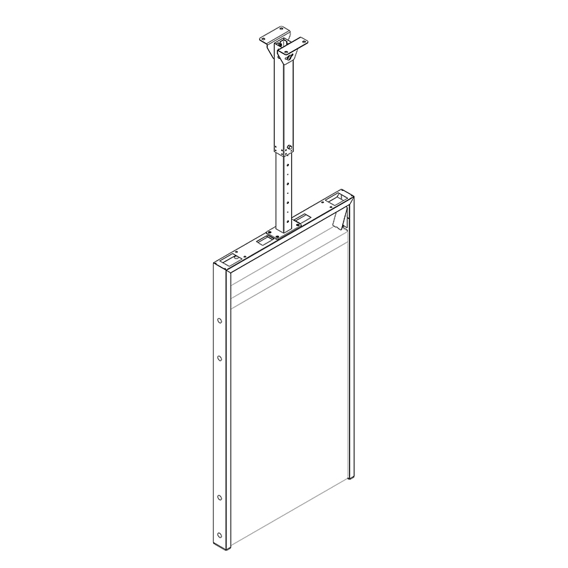 höhenverstellbare Deckenmontage. Dank neigbarer Deckenaufnahme lässt sich die Halterung auch an schräge Decken einsetzen.