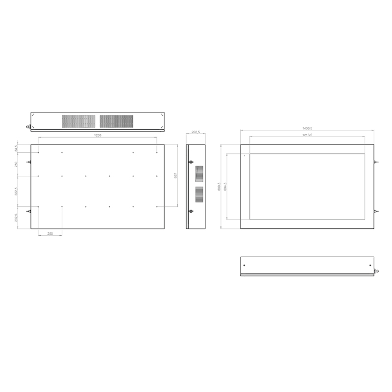 Das Gehäuse ist für 55"-Bildschirme (140 cm) im Querformat ausgelegt.