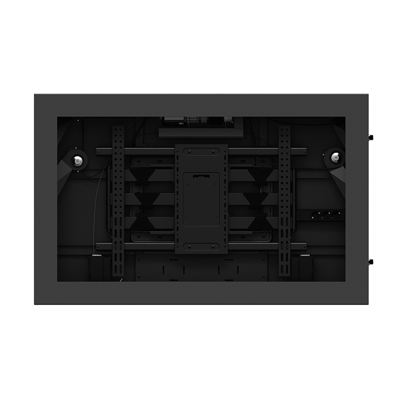 entspiegeltes VSG-Schutzglas, ausziehbare VESA-Aufnahme und ein abgestimmtes Heiz- und Lüftungssystem.