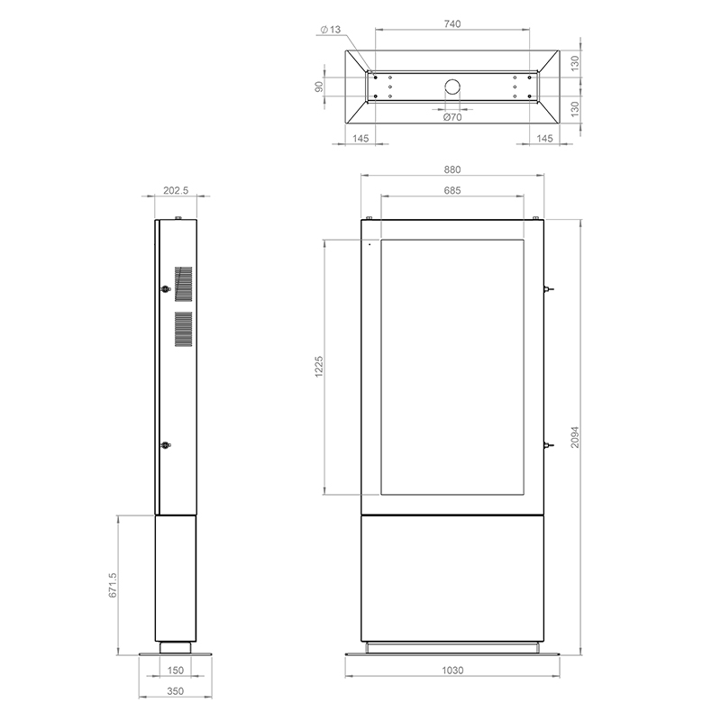 - Produkt: SOPW 55" Portrait Outdoorstele – Outdoorgehäuse inkl. Heizung und Lüftung.