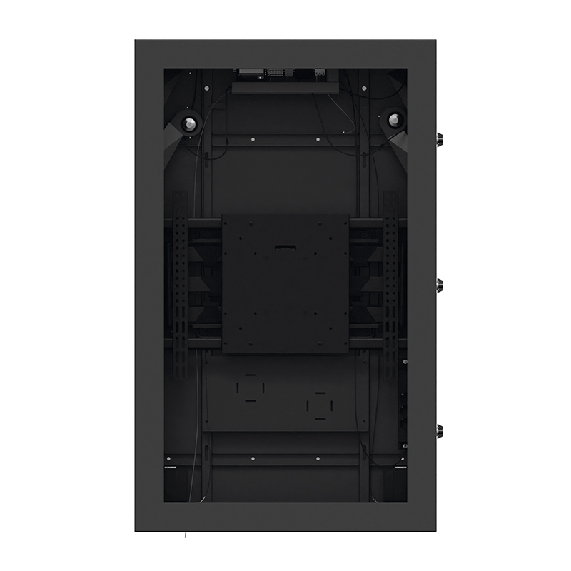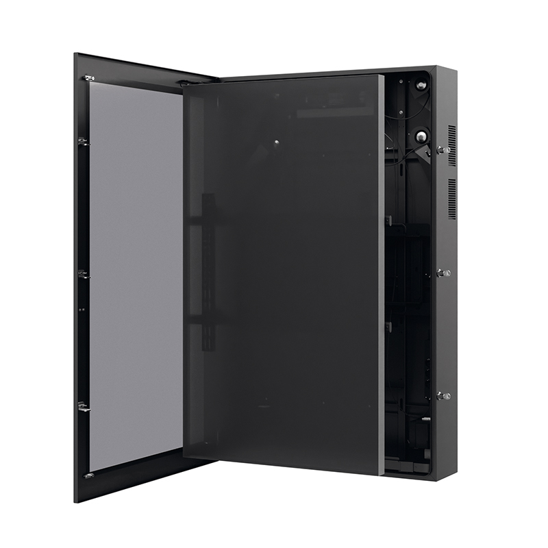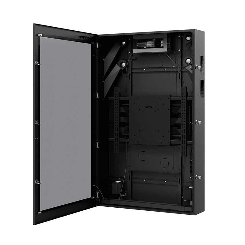 entspiegeltes VSG-Schutzglas, ausziehbare VESA-Aufnahme und ein abgestimmtes Heiz- und Lüftungssystem.