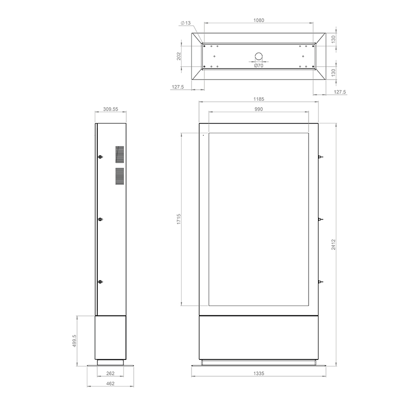 - Produkt: SOPW 75" Portrait Outdoorstele – Outdoorgehäuse inkl. Heizung und Lüftung, IP65, schwarz.