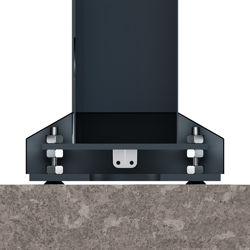 Die Stele ist für die feste Installation im Außenbereich auf einem Fundament ausgelegt und