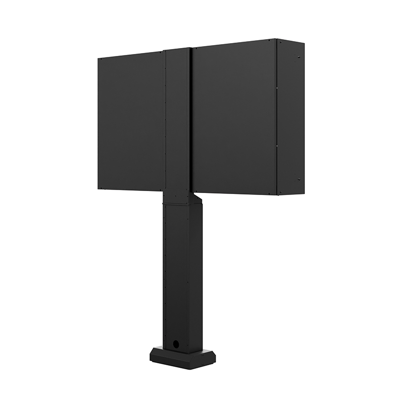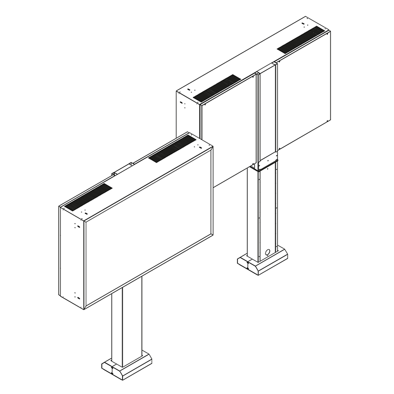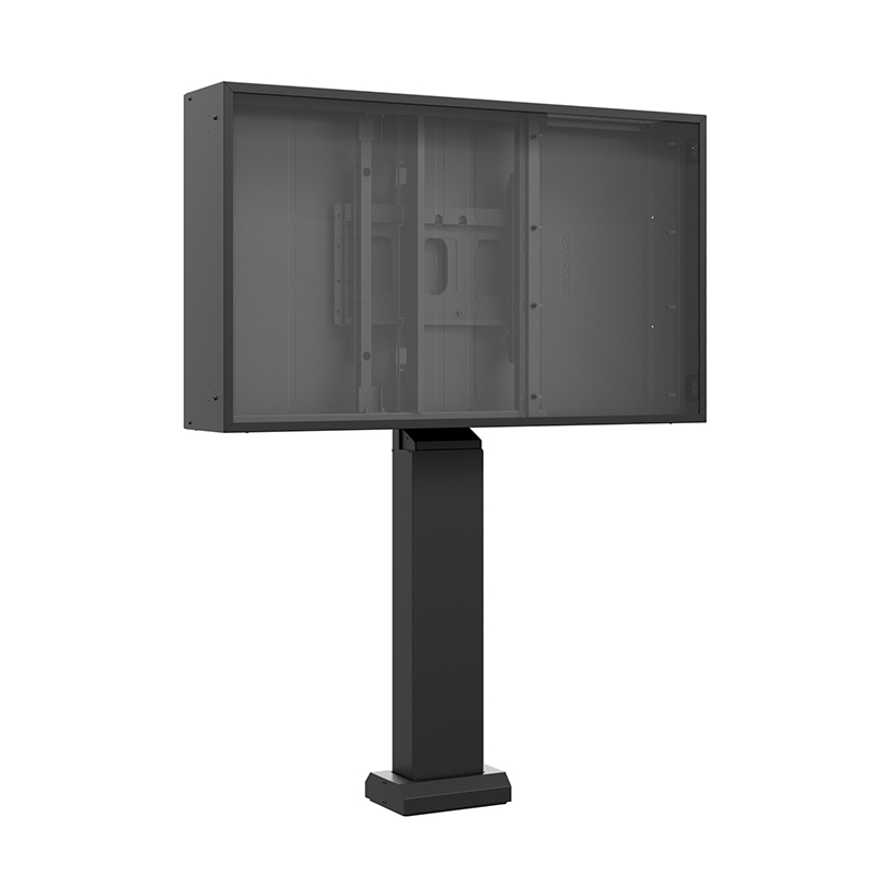 Die angepasste Displayaufnahme erlaubt die Aufnahme der entsprechenden 75 Zoll Outdoor-Monitore in Landscape-Ausrichtung.