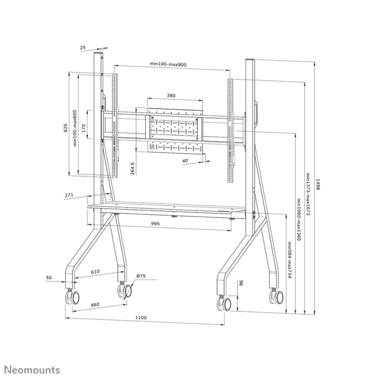 - Trolley für 55–86″ Displays, max. 76 kg Traglast.