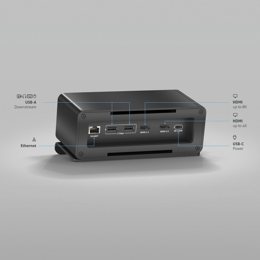 Zwei HDMI direkt am Dock, LAN an Bord, Strom bis 100W – Nutzer stecken nur ihr USB-C Kabel an und sind startklar.