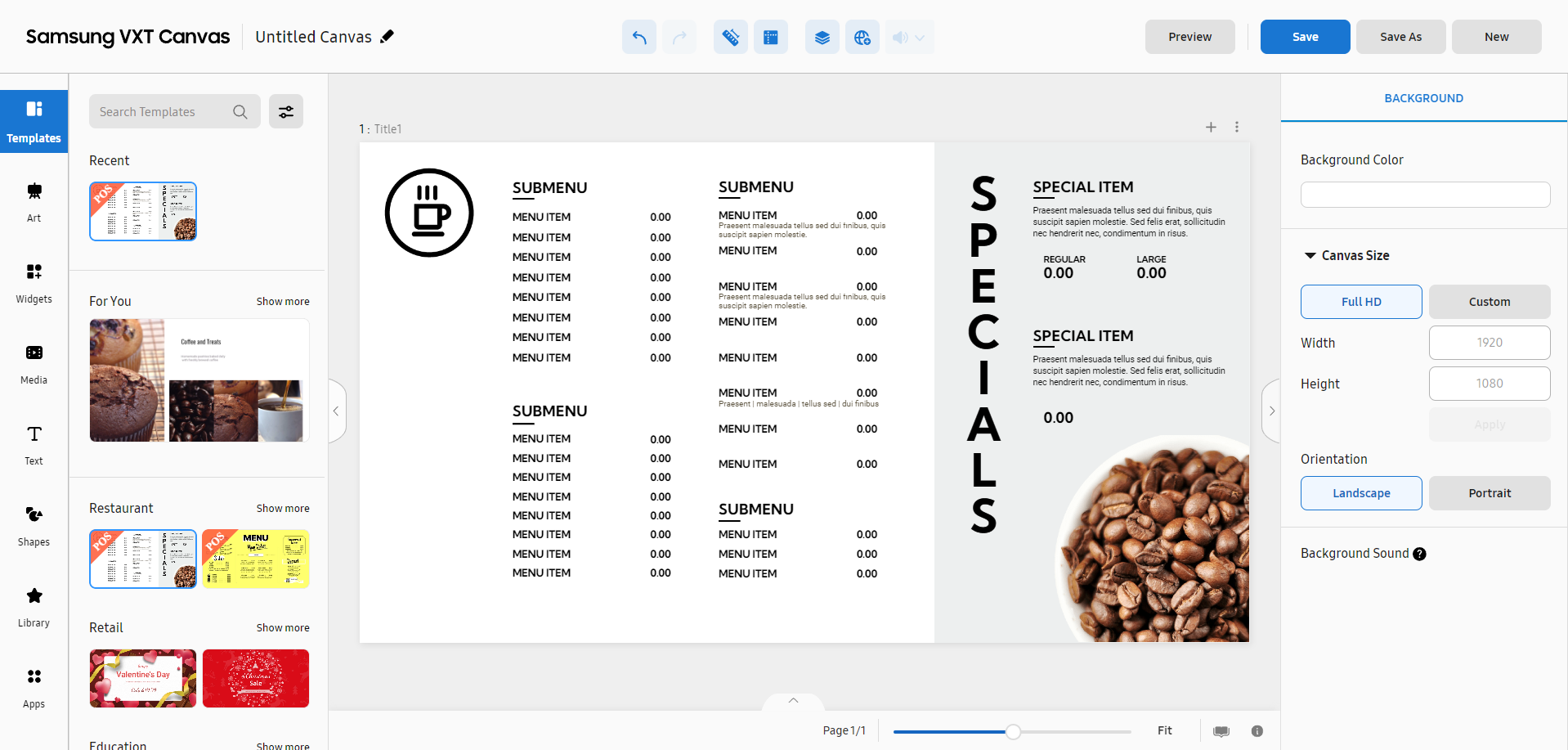 Digitale Menütafeln sind in der Gastronomie mittlerweile ein etablierter Standard, und mit Samsung VXT wird die Integration von Digital Signage in Restaurants noch einfacher und effizienter. Die Erstellung von Inhalten erfolgt dabei schnell und intuitiv, und Werbeaktionen können einfach über ein zentrales Dashboard verwaltet werden, sodass Sie Ihre Menü-Boards innerhalb weniger Minuten aktualisieren können.
