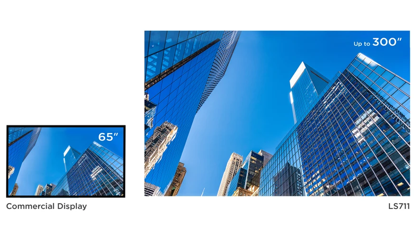 Mit einem Projektionsverhältnis von ca. 0,49:1 erzeugt der LS711HD große Bilddiagonalen auf kurzer Distanz.