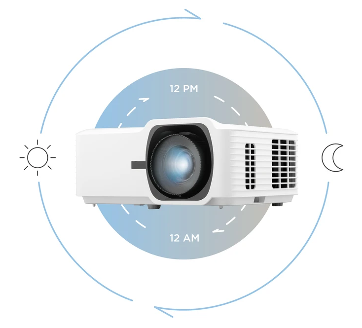 30.000 Stunden im Eco-Modus ausgelegt. Im Vergleich zu lampenbasierten Projektoren entfallen