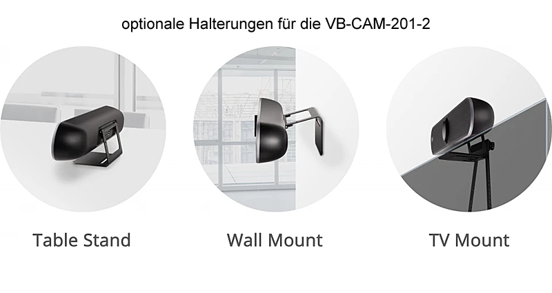 Die VB-CAM-201-2 kann auf dem Tisch, an der Wand oder direkt am Display installiert werden.