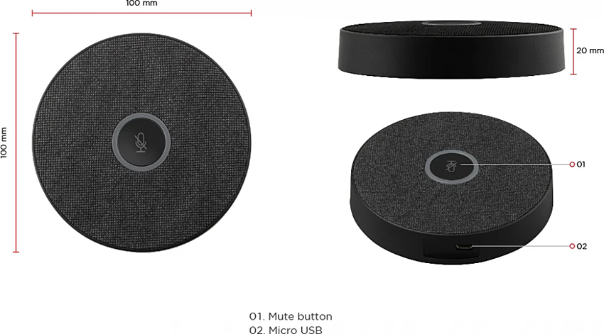 - 360° omnidirektionale Sprachaufnahme mit bis zu 6 m Reichweite.