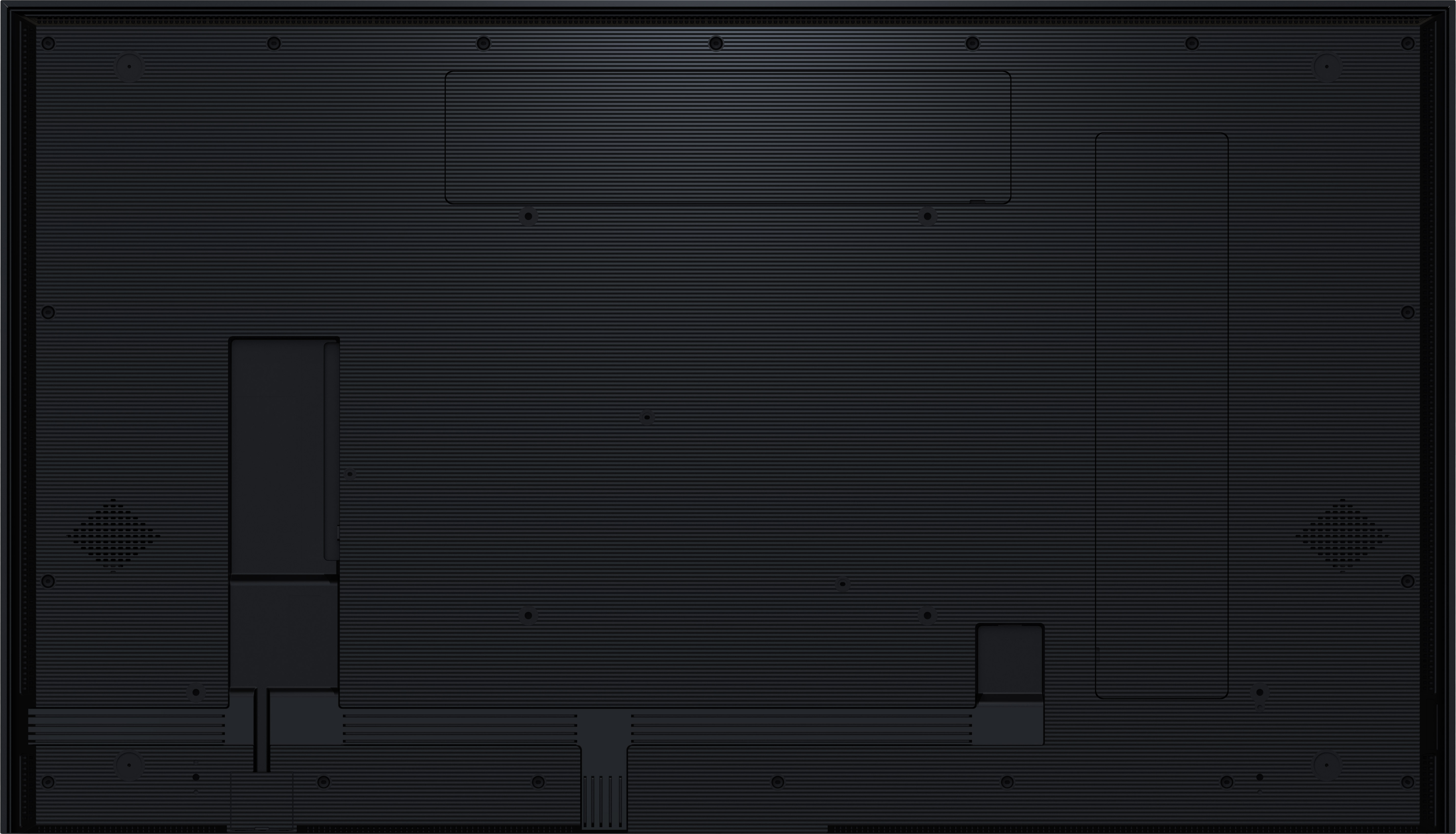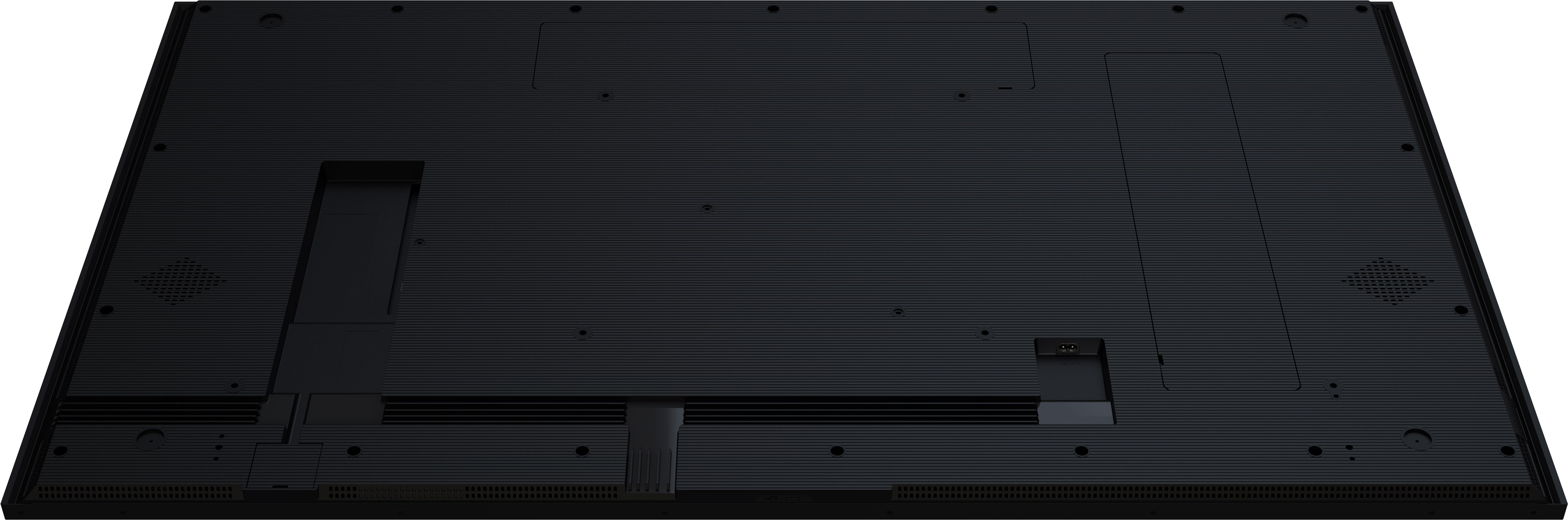 Schlankes Metall-Frontgehäuse mit dünnem Rahmen (Bezel: 14 mm seitlich/oben, 16 mm unten). Außenmaße 1.459,2 × 837,1 × 38,9 mm (B × H × T), Gewicht 25,3 kg. VESA 400 × 400 mm erlaubt eine breite Auswahl an Wand-, Decken- oder Rollwagen-Lösungen – und das Wandhalter-Kit (VESA 400×400) ist bereits im Lieferumfang enthalten.