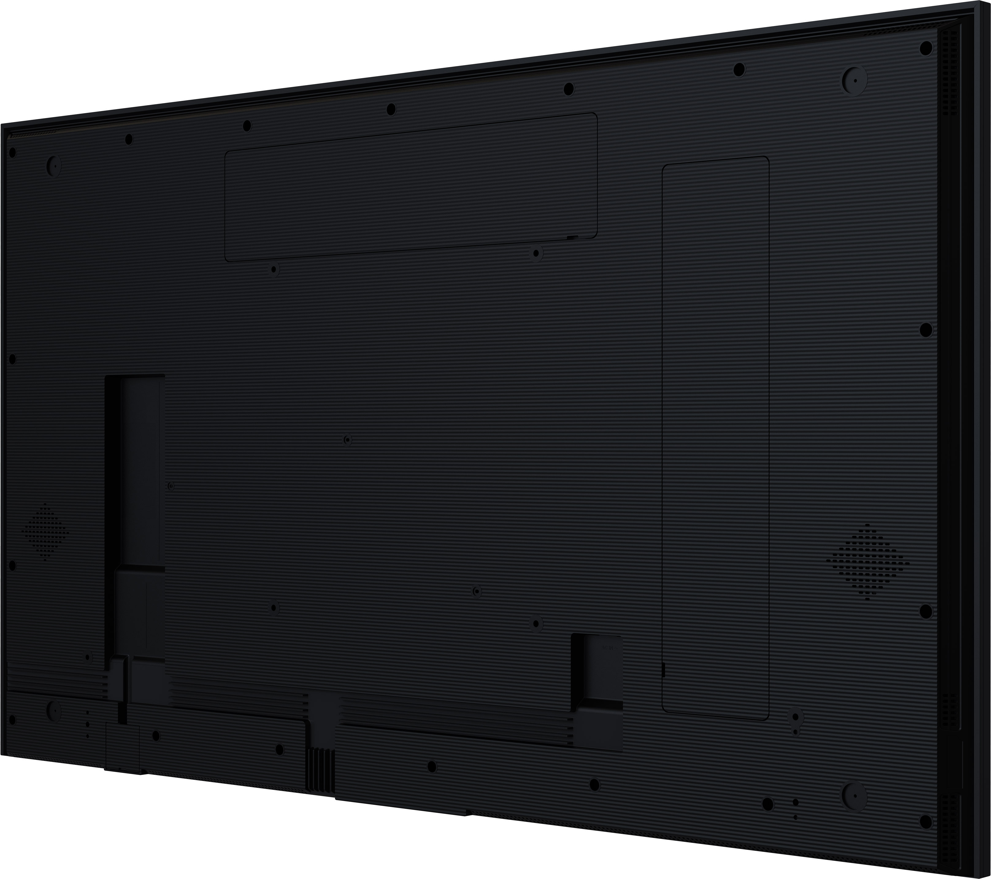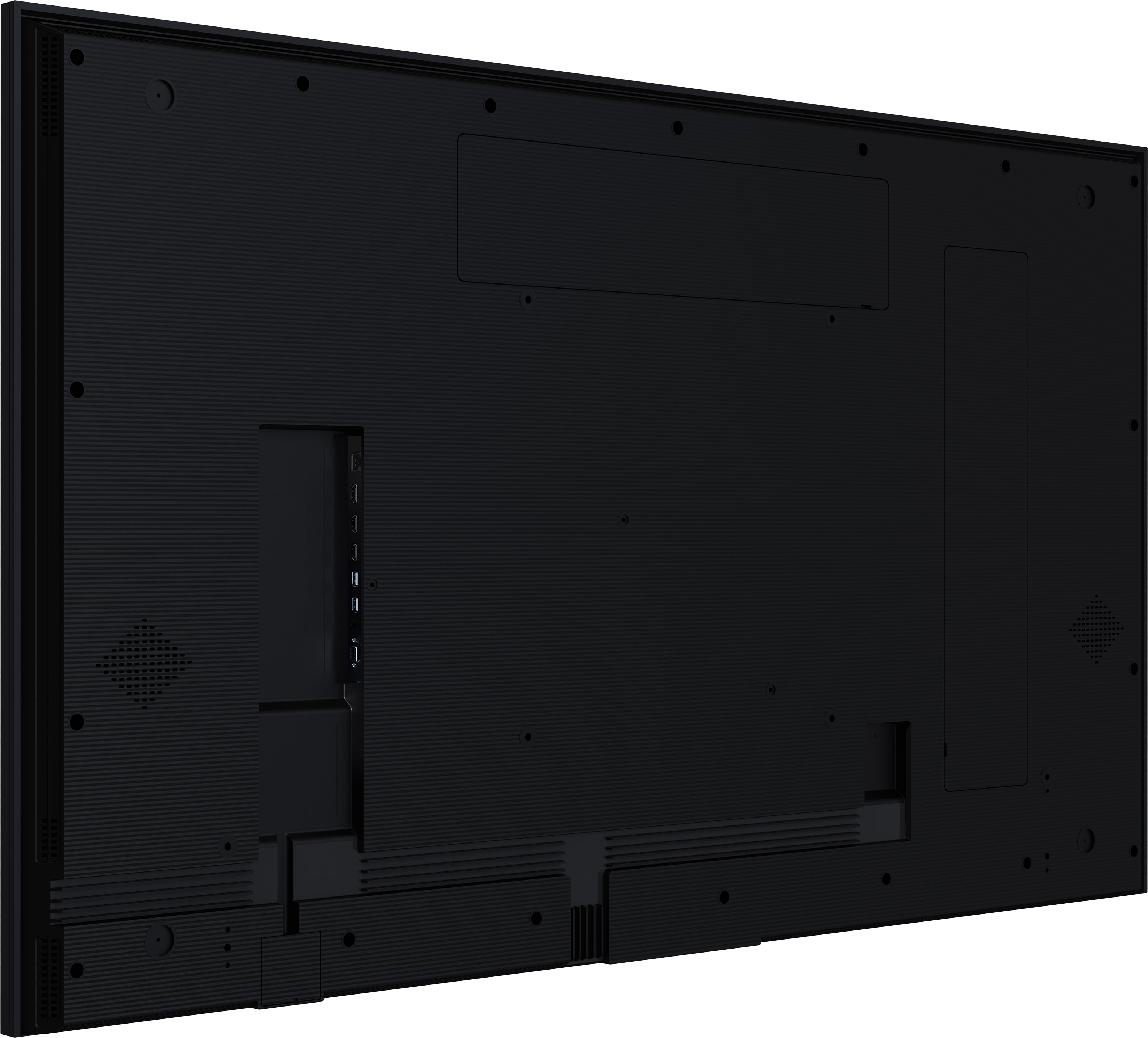 Media Playback ist integriert; Inhalte können lokal wiedergegeben werden. An Schnittstellen stehen bereit: 3 × HDMI 2.0 (bis 4K@60), 2 × USB 2.0, RS-232c, RJ-45 (LAN), IR In/Loop sowie Audio-Out (3,5 mm); HDCP 1.4 & 2.2 wird unterstützt. Für Netzwerke ist WLAN (802.11ac) bereits integriert. Die Beschallung übernehmen 2 × 10 W-Lautsprecher; externe Audioausgabe ist möglich. Hinweis zur Effizienz: Als ELED-VA-Display benötigt das Modell bei gleicher Helligkeit deutlich weniger Leistung als DLED-IPS – ein Plus für große Flotten und lange Laufzeiten.
